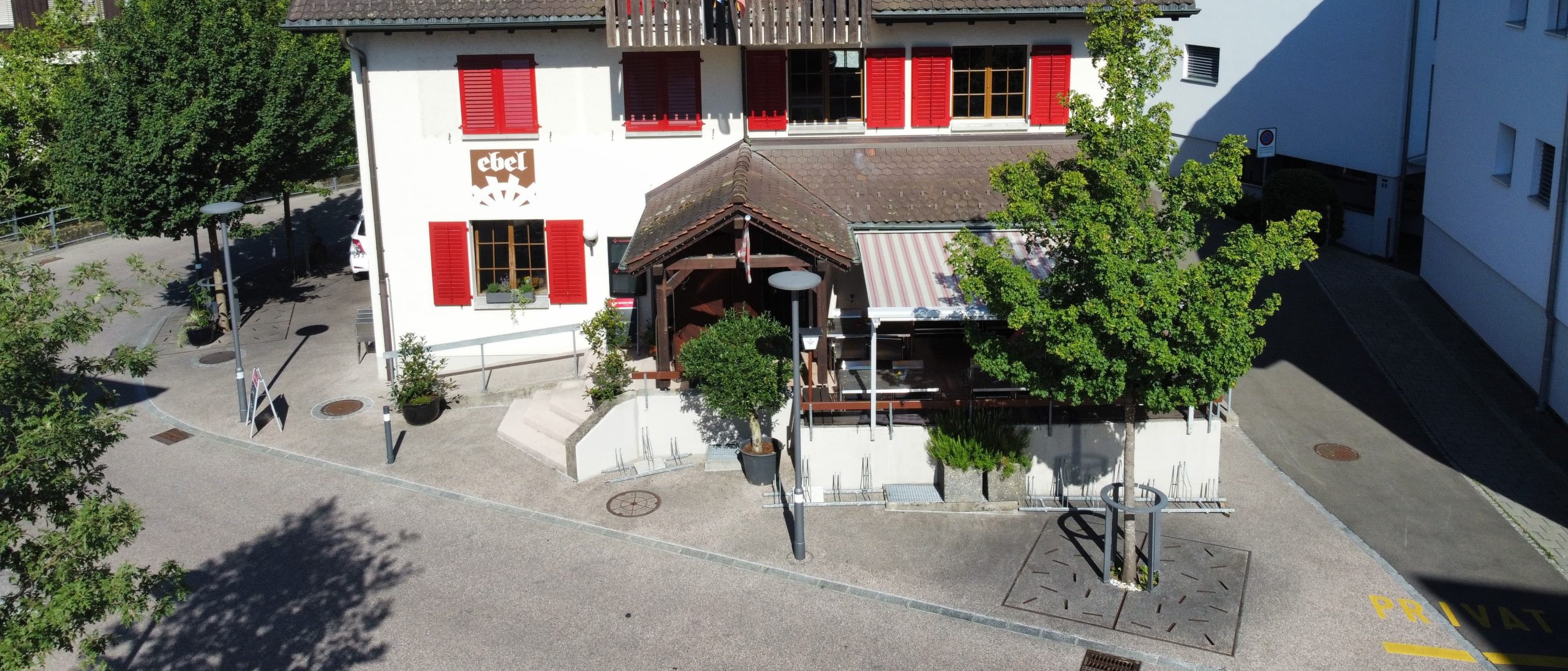 Ein Ort zum Feiern: Für Geburtstage, Hochzeiten, Tauf und Firmungen, Weihnachtsessen, Geschäftsessen und Vereinsanlässe. Das Restaurant verfügt über 58 Innenplätze und eine gemütliche Lounge Ecke sowie 24–36 Plätze auf der Terasse. Das Ebel hat pfiffige Hotelzimmer, die per Telefon oder Email reserviert werden können.